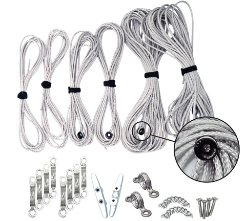 - 2x Tauwerk (16 m lang) inkl. 2 Rundkauschen (7 mm)